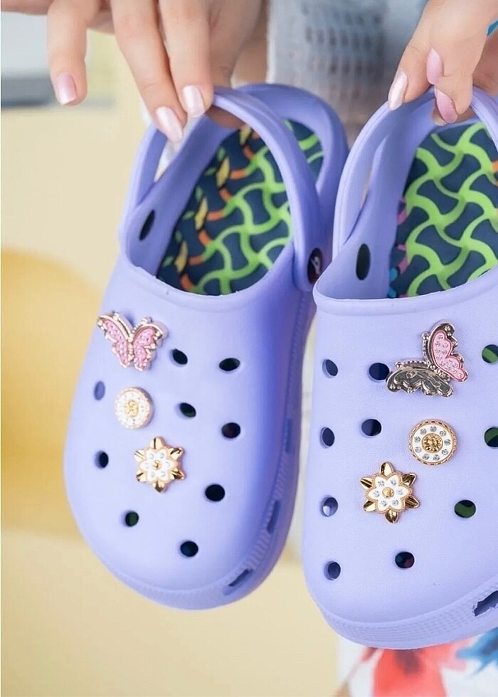 Lila masaj tabanlı crocs terlik