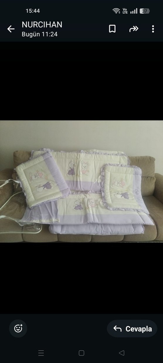 Lila pastel tonlarda, nakışlı desenlere sahip, yumuşak sentetik kumaştan bebek uyku seti. ️