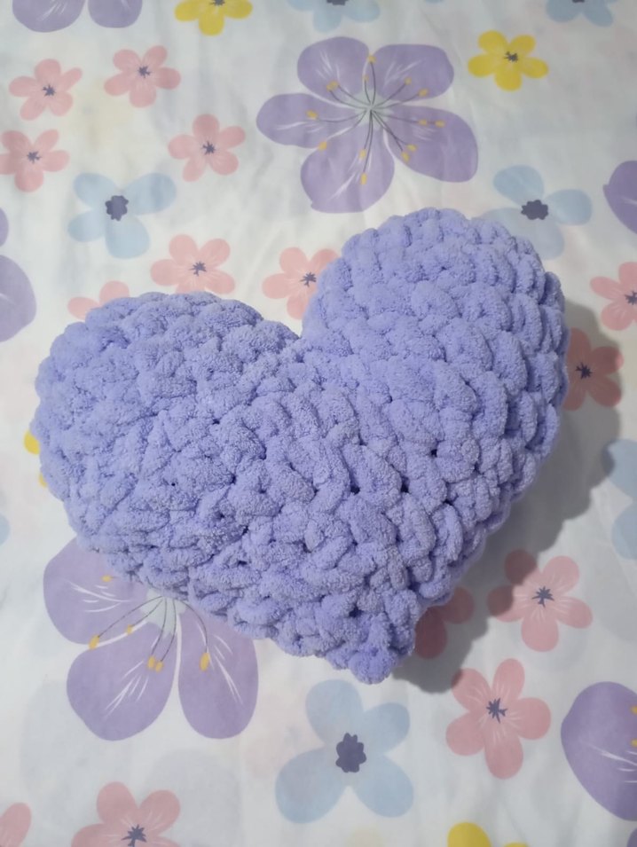 Pastel lila renkte, yumuşak örgüden kalp şeklinde çocuk yastığı. Desensiz tasarımıyla odalara sıcaklık katıyor.