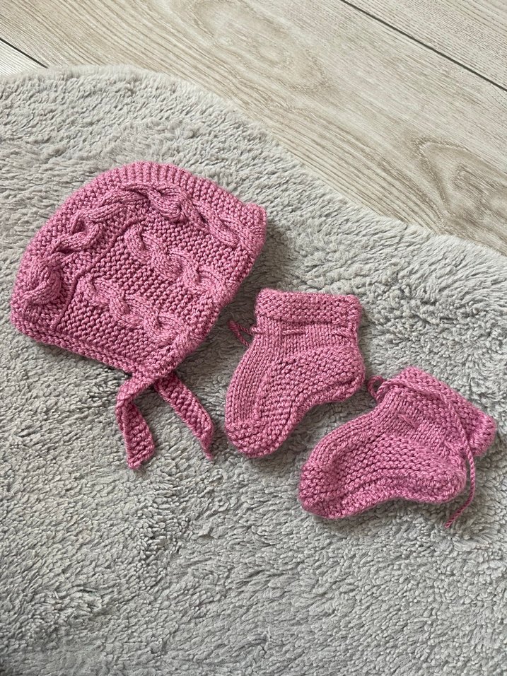 Lila Örgü Kız Bebek Patik ve Şapka Seti