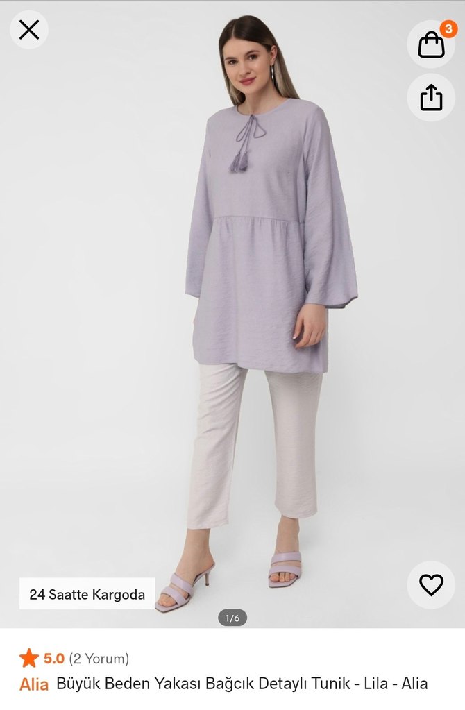 Lila pamuk kumaştan, yüksek yakalı ve uzun kollu, salaş kesim midi boy kadın tunik. Düz ve pastel tonuyla günlük kullanıma uygun, zahmetsiz şıklık sunar. Modanisanın büyük Beden markası olan Alia dan alındı 1 kez 2 saat kadar giyildi yıkandı ütülendi yepyeni hafif rahat şık tarz