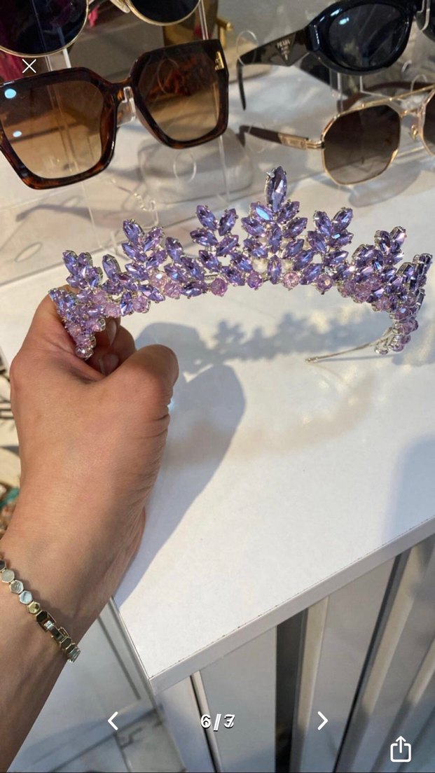 mor lila payetli nişan gelin tacı