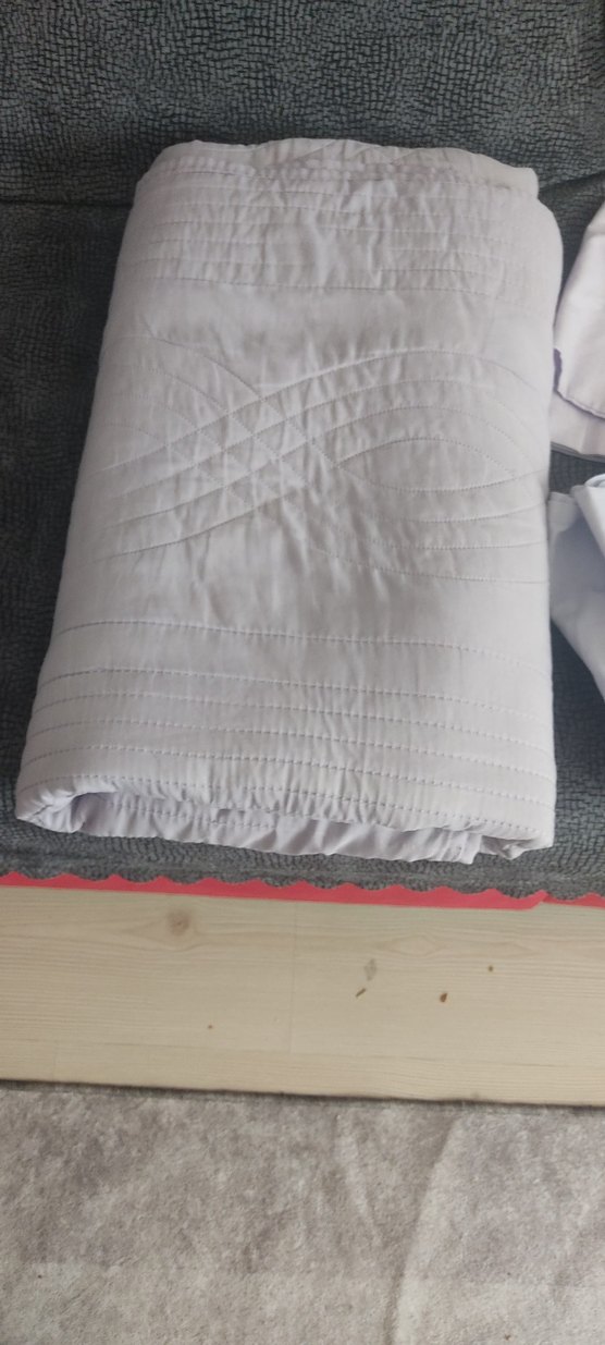 Bu yatak örtüsü, yumuşak ve rahat dokusu olan açık Lila renkte, hafif kapitone detaylı çift kişilik çarşaf ve tek yastık hepsinin fiyatı