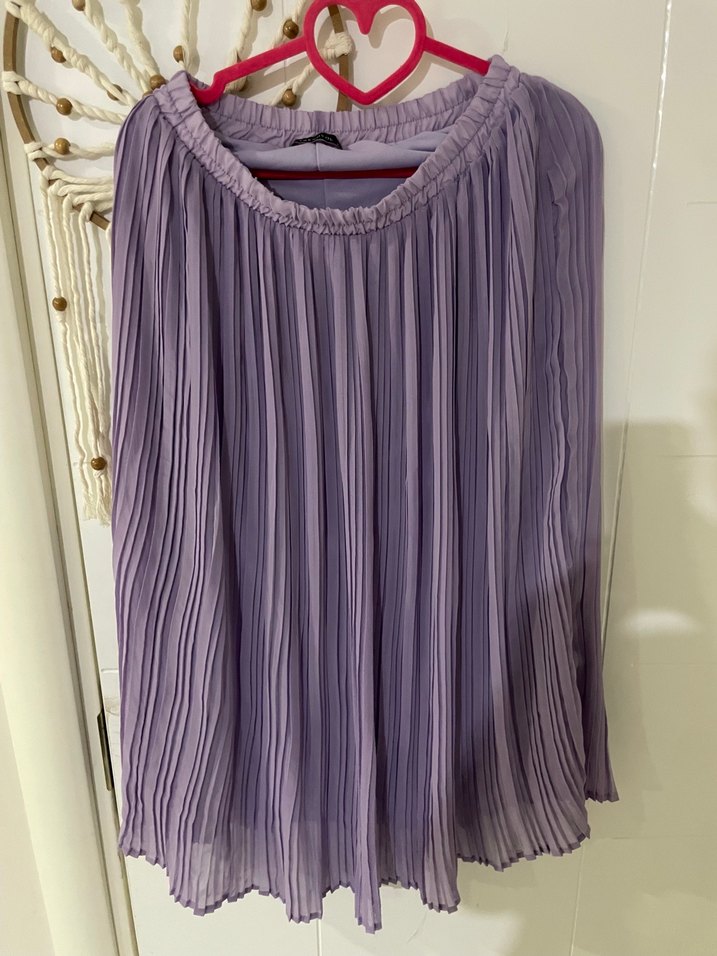 Lila renkte, piliseli ve bol kesim midi tül etek. Bohem tarzıyla günlük kullanıma uygundur.