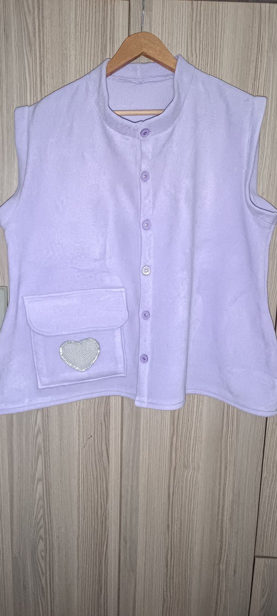 lila rengi polar kumaştan, düğmeli ve kesik yaka detaylı kadın yeleği. Rahat kesimli, günlük kullanım için rahat ve şık. Ceplerde kalp detayı bulunur. Kışın kurtarıcı parçası sıcacık tutar. siparişe özel dikilir istenilen beden ve renkte sipariş verebilirsiniz.