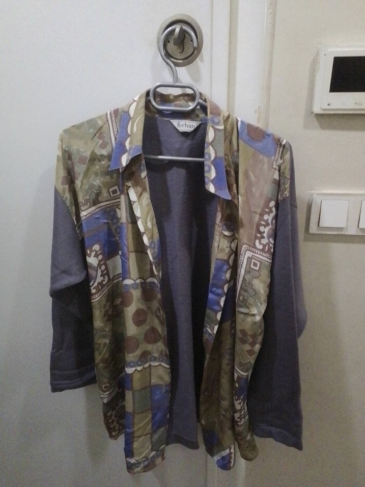 Lila tonlarda, düğmeli, uzun kollu, notalı yakalı ve bol kesim gömlek. Bohem ve sokak stilini yansıtan batik desenli tekstil kumaşından yapılmıştır. Günlük kullanım için uygundur.