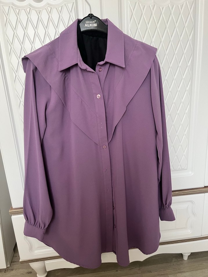 Lila rengi gizli düğmeli tesettür gömlek çok temizdir yeni gibi