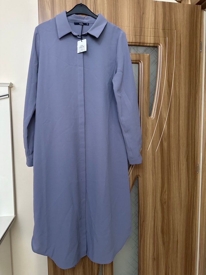 Lila Renk Krep kumaş Uzun Kollu Gizli Düğmeli Kadın Tunik