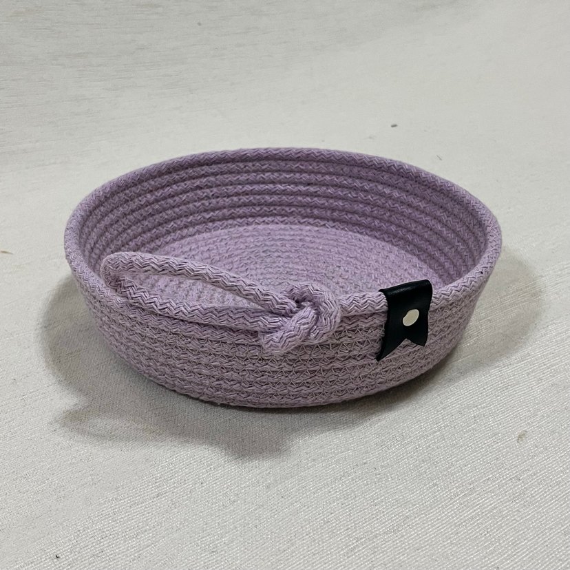 Lila renkte, küçük kulplu ve siyah etiketli sepet. Düzenleme ve saklama için uygundur. Renk seçenekleri mevcuttur