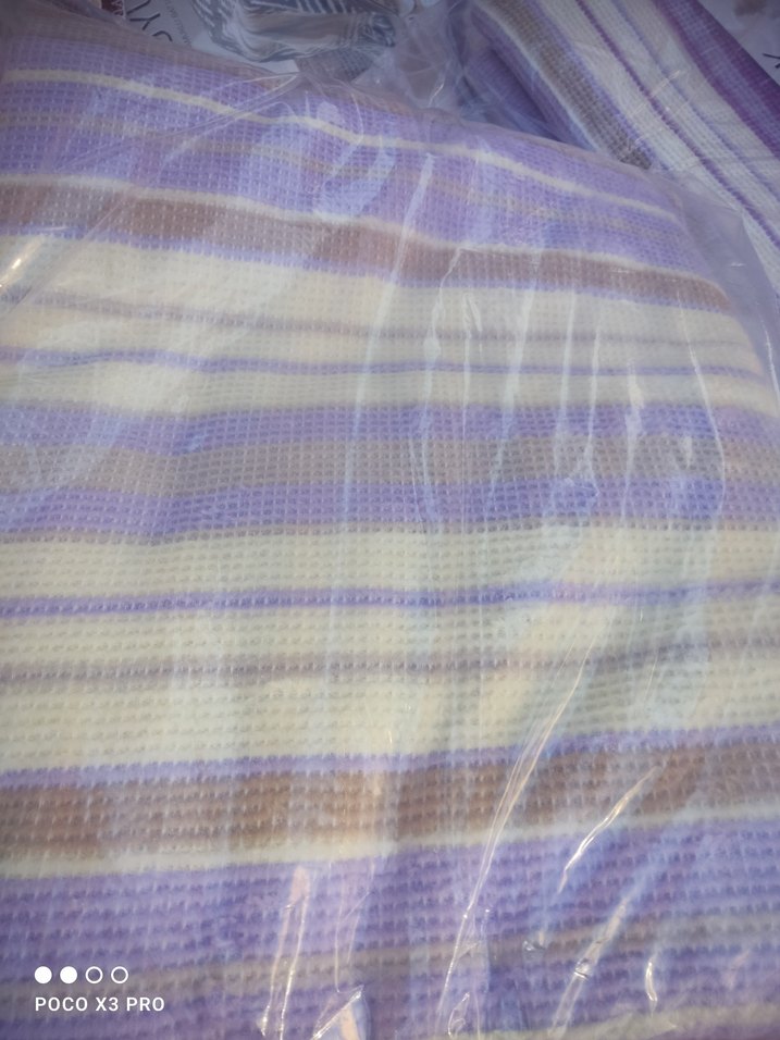Yumuşak çizgili dokusu ve bağlama desenli pastel tonlarda lila renkli battaniye. Hafif renkleriyle sakin ve zarif bir görünüm sunar. çift kişilik