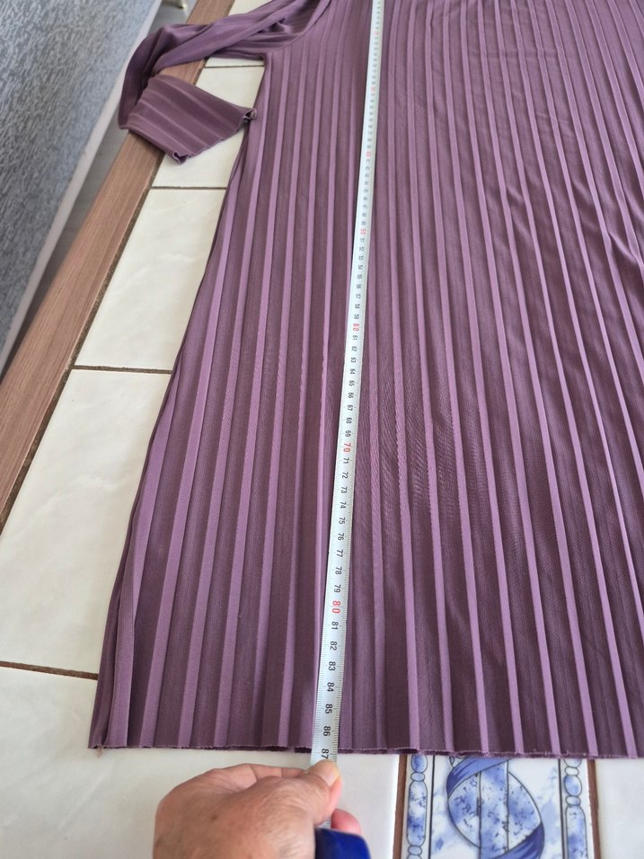 Kadınlar için uzun kollu, salaş kesim sandi kumaş çok az kullanıldı hiç bir deforme yok ikili takım koyu lila rengi ölçülerini çektim