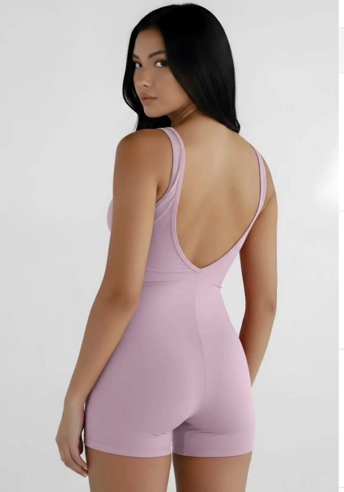 Pembe pastel renkte, V yakalı ve askılı kısa kadın tulum. İnce kesimi ve ipeksi dokusuyla sportif ve modern bir şıklık sunar. ✨ L ve M bedeni mevcuttur
