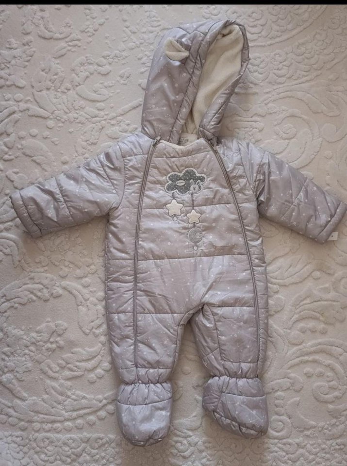gri renk, kürklü detaylı ve nakışlı desenli bebek kız tulumu. Notch yaka ve kapüşonlu tasarıma sahiptir. ❄️6 9 ay icin uygundur. cok az kullanildi