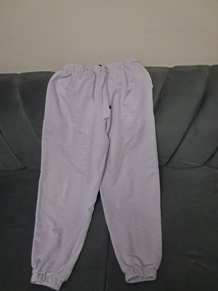 lilaketen kumaştan, rahat kesim ve midi boyda, elastik manşetli kadın sweatpant. Günlük kullanım için konforlu ve şık bir seçenek. rengi lila