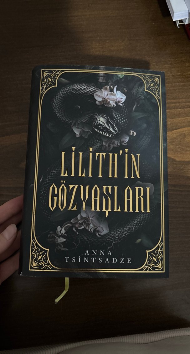 Anna Tsintsadze'nin Lilith'in Gözyaşları adlı romanı, yılan ve çiçeklerle süslenmiş karanlık kapak tasarımıyla dikkat çekiyor.