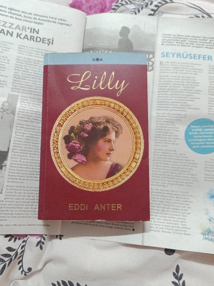 Eddi Anter'in Lilly adlı romanı, klasik kapak tasarımı ve altın çerçeveli kadın portresiyle dikkat çekiyor. Gira yayınevi.(sadece arka kapağı silik, iç sayfalarında hiçbir sıkıntı yok.)