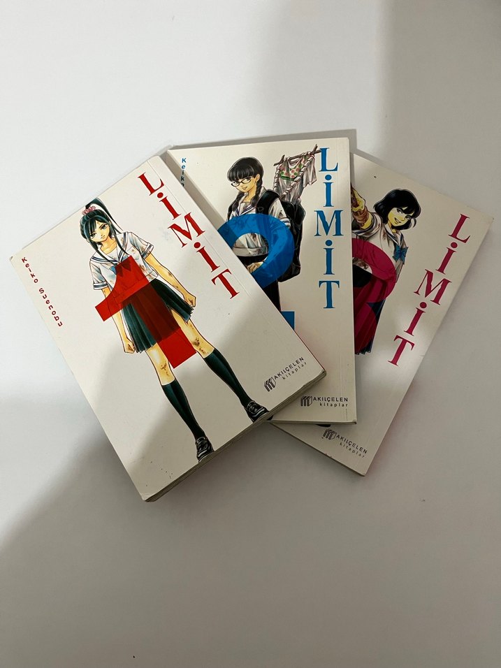 Limit manga serisinden 1-2-3 üç kitap, her biri farklı karakter kapak illüstrasyonlarıyla.