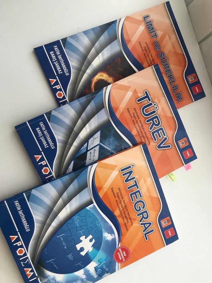 Limit ve süreklilik, türev ve integral konularını içeren sınav hazırlık kitapları seti, ileri matematik çalışmaları için uygundur. 3te 2si cozulmus