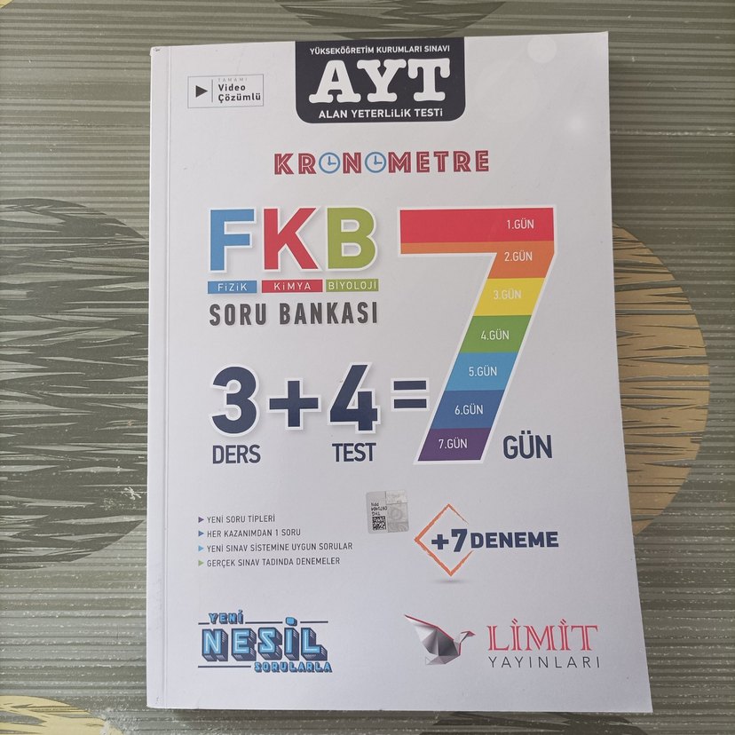 Limit Yayınları FKB soru bankası fizik, kimya, biyoloji derslerini 7 gün boyunca ders ve testlerle sunar. 7 deneme ve video çözümleri içerir.