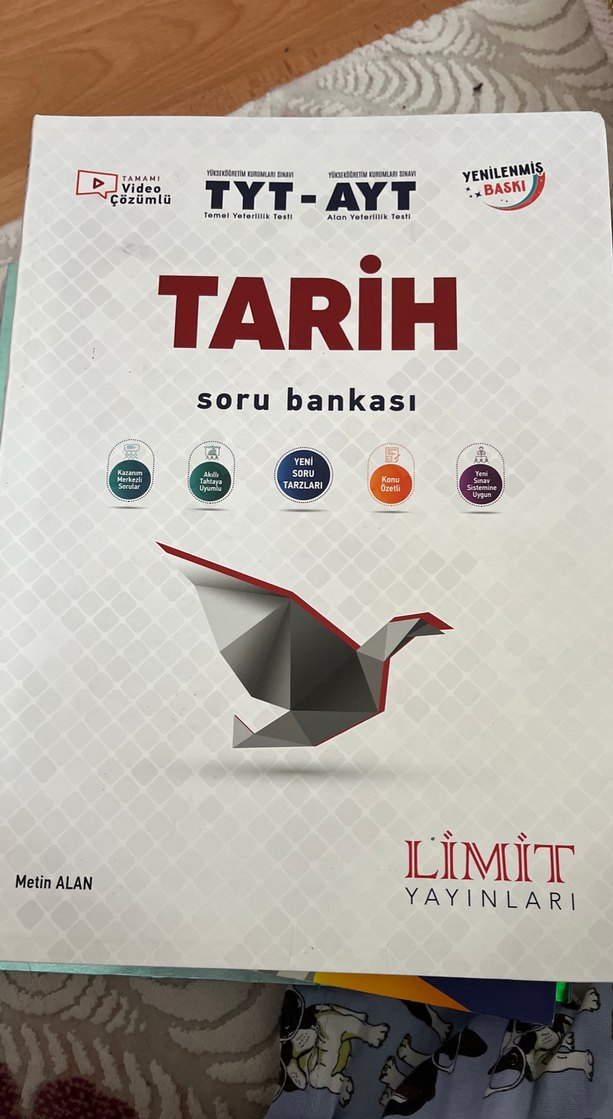 Limit Yayınları'ndan TYT-AYT tarih soru bankası. Yeni soru tarzları, video çözümler ve güncel sınav standartlarına uygun içerik sunar. SIFIR SADECE 1.ÜNİTE ÇÖZÜLDÜ GERİSİ BOŞ TOPLU ALIMDA İNDİRİM YAPARIM