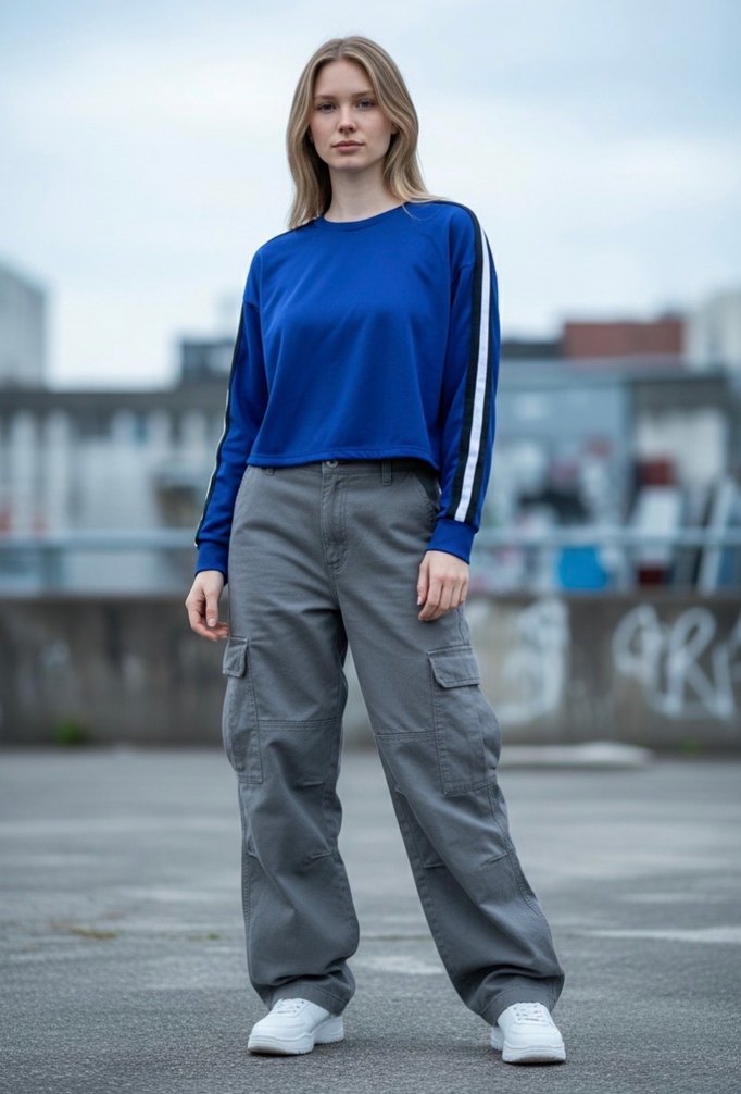 Ürün Açıklaması Enerjik, Sportif ve Özel Seri! ⚡ Sıradan sweatshirt'lerden sıkılanlar için tasarlanan bu "Limited Edition" parça, canlı saks mavisi rengiyle kombinlerinize enerji katar. Omuzdan kola inen şeritleri ve metal düğme detaylarıyla tam bir "Athleisure" (Spor Şıklık) yıldızıdır. Kumaşı scuba/dalgıç benzeri tok ve dökümlü bir yapıdadır; üzerinizde kalıp gibi durur, terletmez. ✨ Stil İpucu: Boxy Crop (Kısa ve Geniş) kesimi sayesinde yüksek bel taytlar veya jogging pantolonlarla harika durur. Spor salonundan kahve içmeye geçerken o "Cool" görünümü tek parçayla yakalarsınız. Kritik Ölçüler ve Kalıp (S-M Uyumlu) Ürün salaş ve kısa modeldir. Lütfen ölçüleri kıyaslayınız: İki Koltuk Altı: 53 cm (Geniş/Salaş kesim). Boy: 47 cm (Göbek hizasında biten crop model). ️ Kondisyon Raporu (10/9.5) Ürün "Limited Edition" etiketini hak edecek temizliktedir. Renginde solma, kumaşında tüylenme kesinlikle yoktur. Şeritleri bembeyazdır.