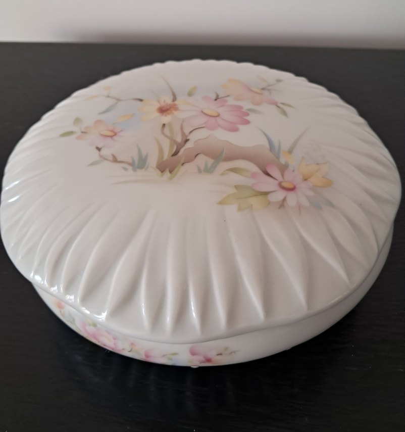 Hem yeşil hem soğuk damgaya sahip limogea şekerliğin çapı 15 cm. yüksekliği 7 cm.dir.