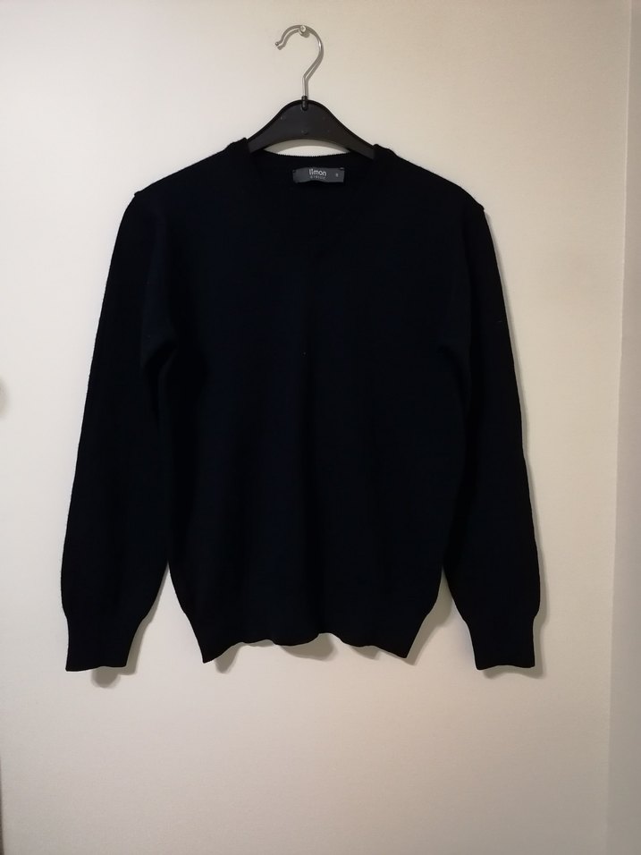Limon company %50 yün %50 akrilik Uzun kollu, V yakalı lacivert kadın yün kazağı, rahat kalıp ve sade tasarımıyla dikkat çekiyor. Streetwear stiline uygun.