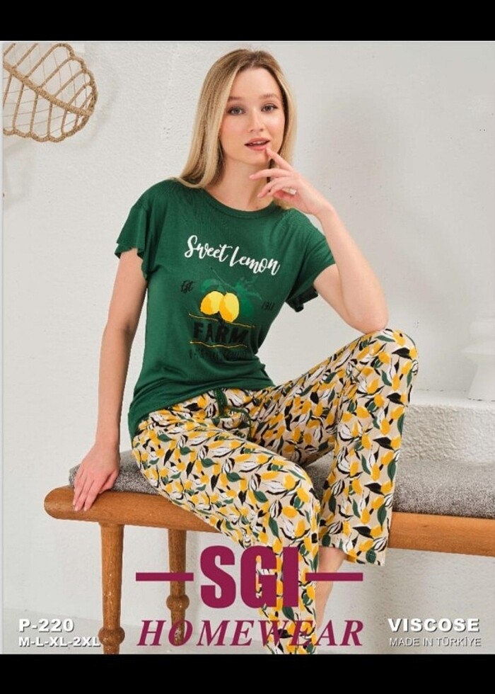 Limon desenli pamuklu viscon kadin pijama takimi. Bedeni xl'dir