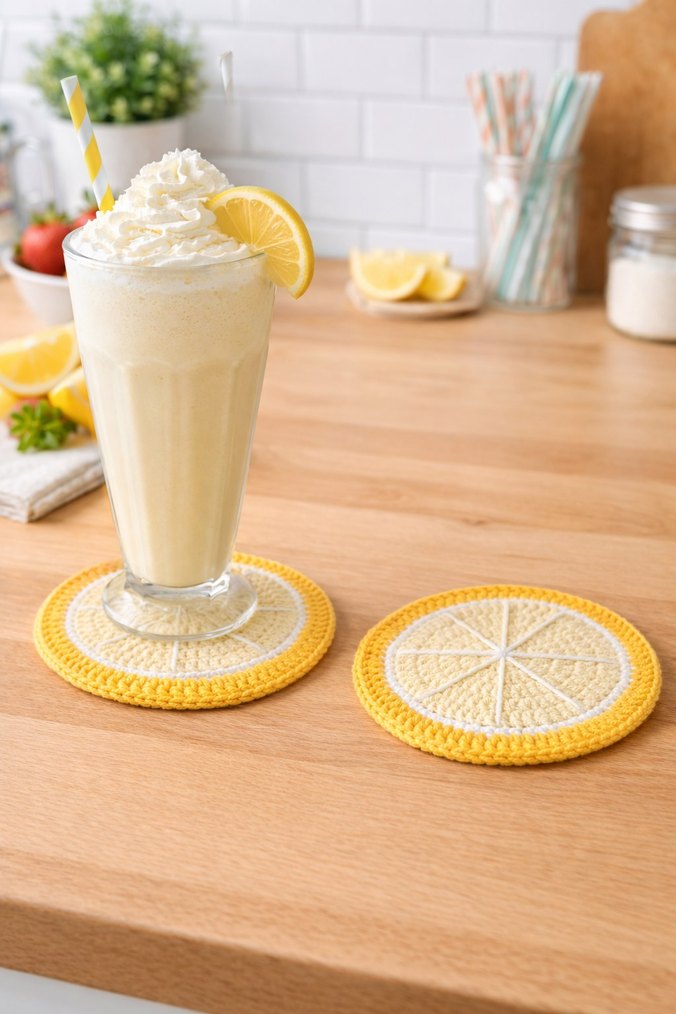 Limon Dilimi Desenli Sarı Bardak Altlığı