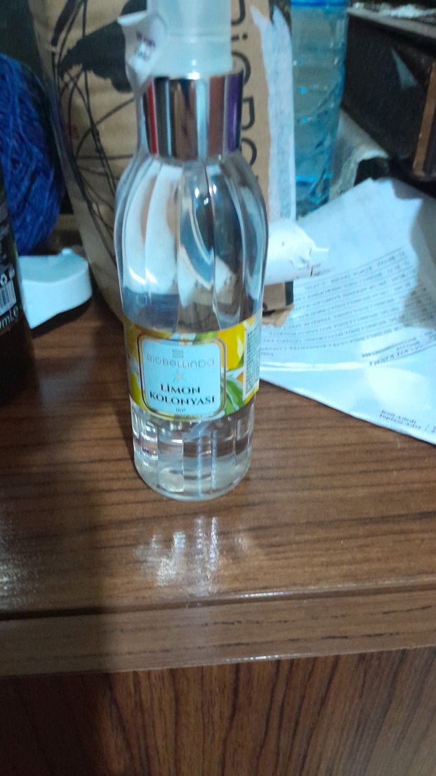 Şeffaf şişede, gümüş kapaklı, ferah limon kokulu kadın kolonyası.