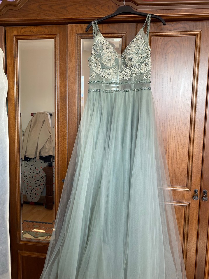 Rengi çok harika uzun nişan elbisesi, taş işlemeli yaka ve ince askılı kollara sahip. Nakışlı dantel detaylarıyla modern klasik ve bohem tarzları birleştirir. Gögüs kısmı 80,85 uyumlu 163 boyunda 50 kg ile giyildi
