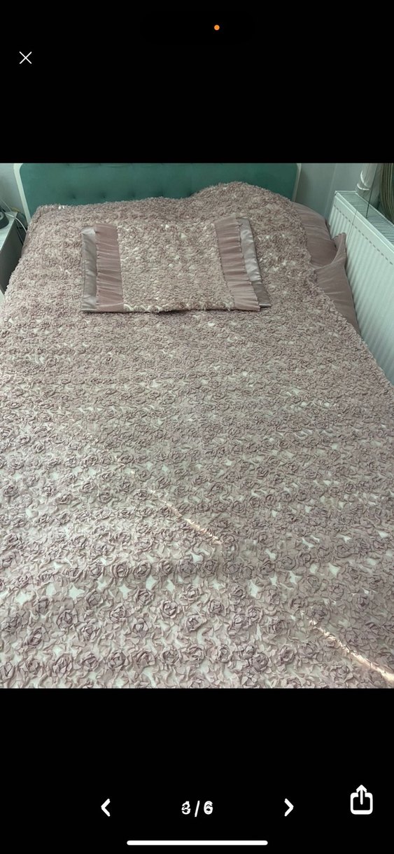 Daha detaylı nakışlı desenlere sahip pudra pembe yatak örtüsü, yatak odasına şıklık ve doku katıyor. Uyumlu yastık kılıfı ile birlikte.tül detaylı güller vardır. 100/120 cmlik yatağa uygun çok şık yatak örtüsü. Kervandan alınmıştır.