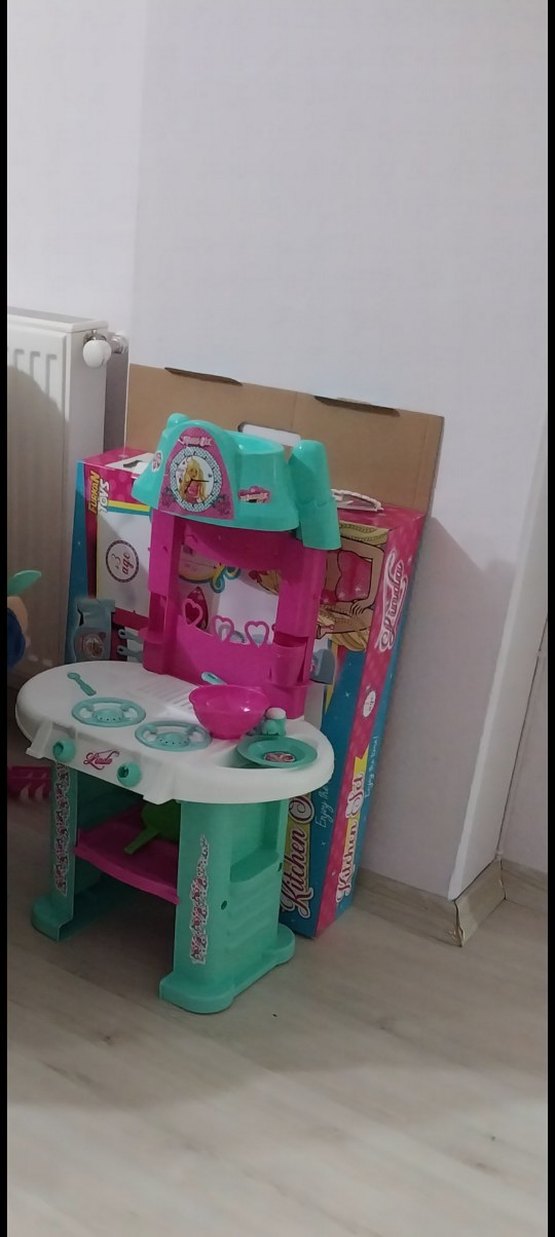 3 yaş ve üzeri çocuklar için 23 parçalı pembe Linda mutfak seti, oyuncak mutfak gereçleri ve aksesuarları içerir. sadece bir parçası kırıldı yeni alındı. ama asla oynamaya engel değil son görseldeki gibi aşırı güzel. kızımın oyuncağı fazla olduğu için isteyen alsın uyguna bırakıyorum. 1250 tl ye aldım.