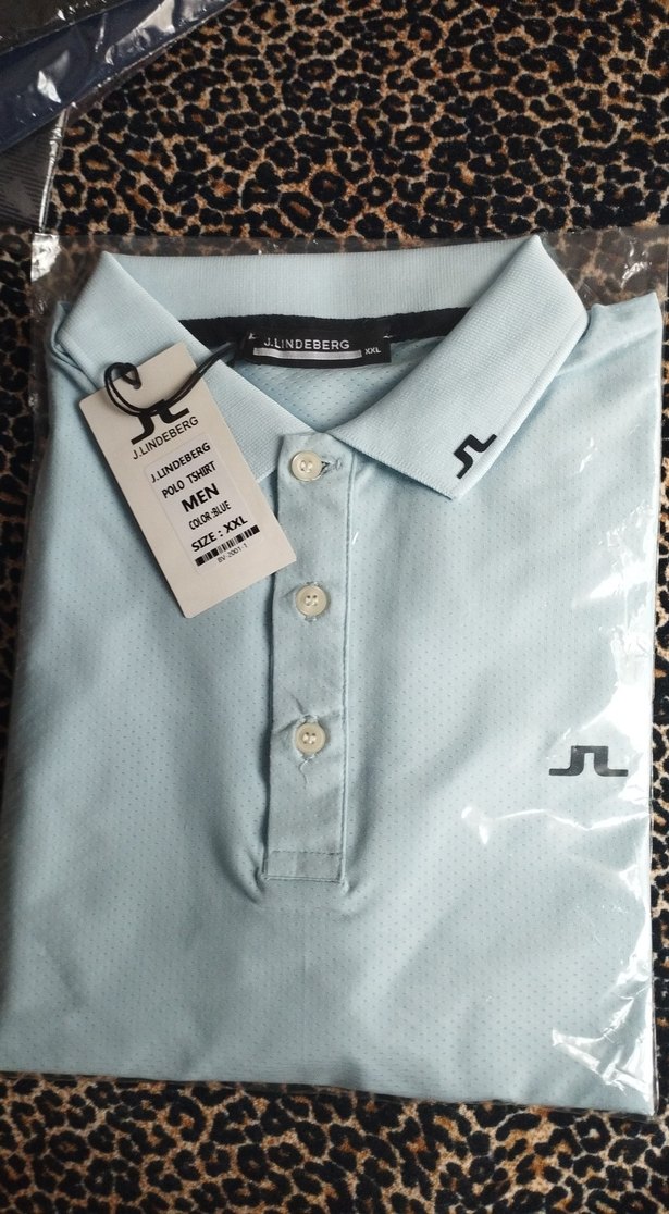 Lindberg markalı, düğmeli ve yakalı, pastel mavi renkte, sentetik kumaştan yapılmış, baskılı ve dar kesim erkek polo tişört.