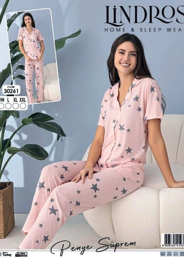 LİNDROS Pembe Yıldızlı Bayan Pijama Takımı Beden: S/M-L-XL-2XL #pijamatakımı