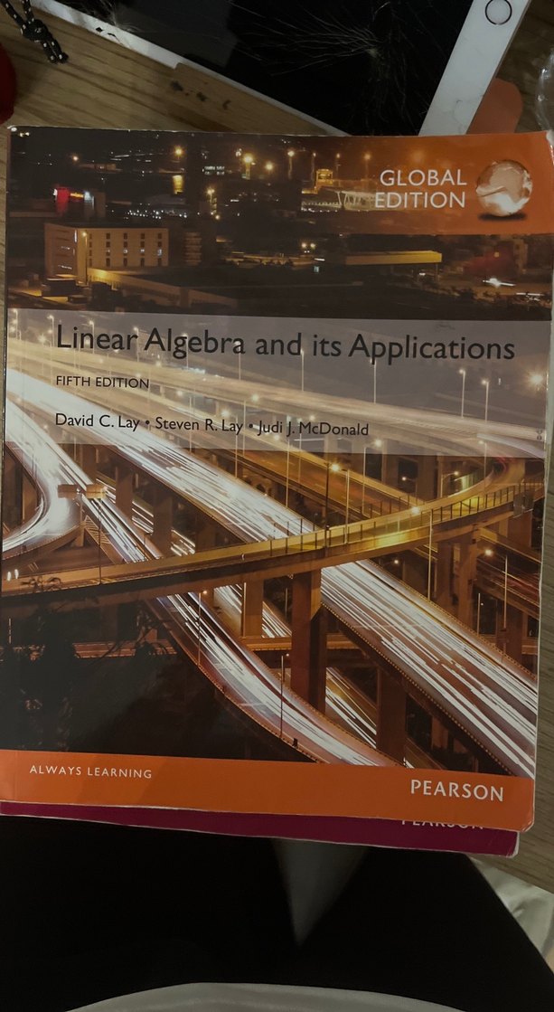 David C. Lay, Steven R. Lay ve Judi J. McDonald tarafından yazılmış, lineer cebir ve uygulamalarını içeren Pearson yayınlı beşinci baskı kitap.