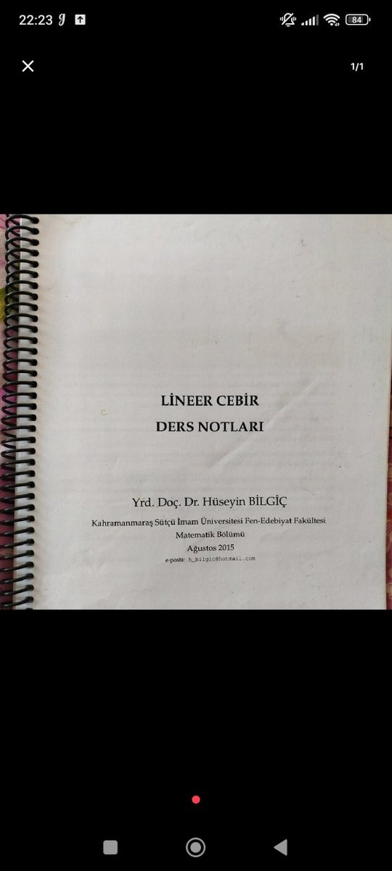 Kahramanmaraş Sütçü İmam Üniversitesi'nden Yrd. Doç. Dr. Hüseyin Bilgiç tarafından hazırlanmış lineer cebir ders notları.