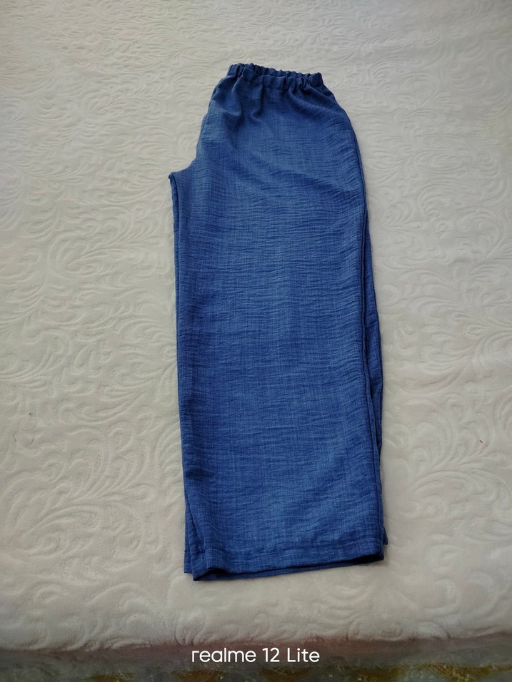 Linen Kumaş Mavi Geniş Paça Pantolon 1 defa giyildi