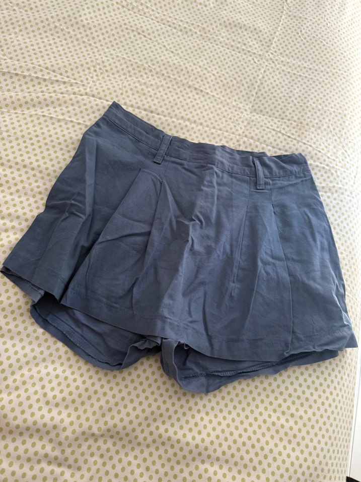 Nefes alabilen keten kumaştan yapılmış, mavi renkli piliseli şort etek