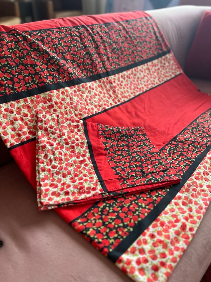 Linens’ten kırmızı üstüne gelincik desenli pamuk saten tek kişilik nevresim ve yastık kılıfı. Çarşaf YOK. Nevresim takımı ve deseni çok tatlı. İç ve dışta ayrı desen var. İki taraflı kullanabilirsiniz. İkinci desen üçüncü fotoğrafta. Takımı annem hediye etti. Bir defa kullandım. Açık ve düz ürün tercih ettiğimden satıyorum. Ayrıca Linens pamuk saten düz kırmızı çift kişilik çarşafım da var. Çift kişilik yatağınız olup tek kişilik nevresim kullanıyorsanız benim gibi, onu da ayrıca satabilirim. Takım yepyeni ve tertemiz.