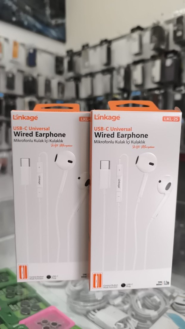 Linkage USB-C bağlantılı mikrofonlu kablolu kulaklık, net ses ve eller serbest arama için uygundur. USB-C cihazlarla uyumludur. Beyaz renkte.