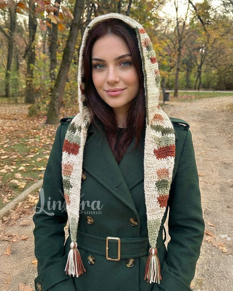 Linora Bohem Örgü Kapüşonlu Şal