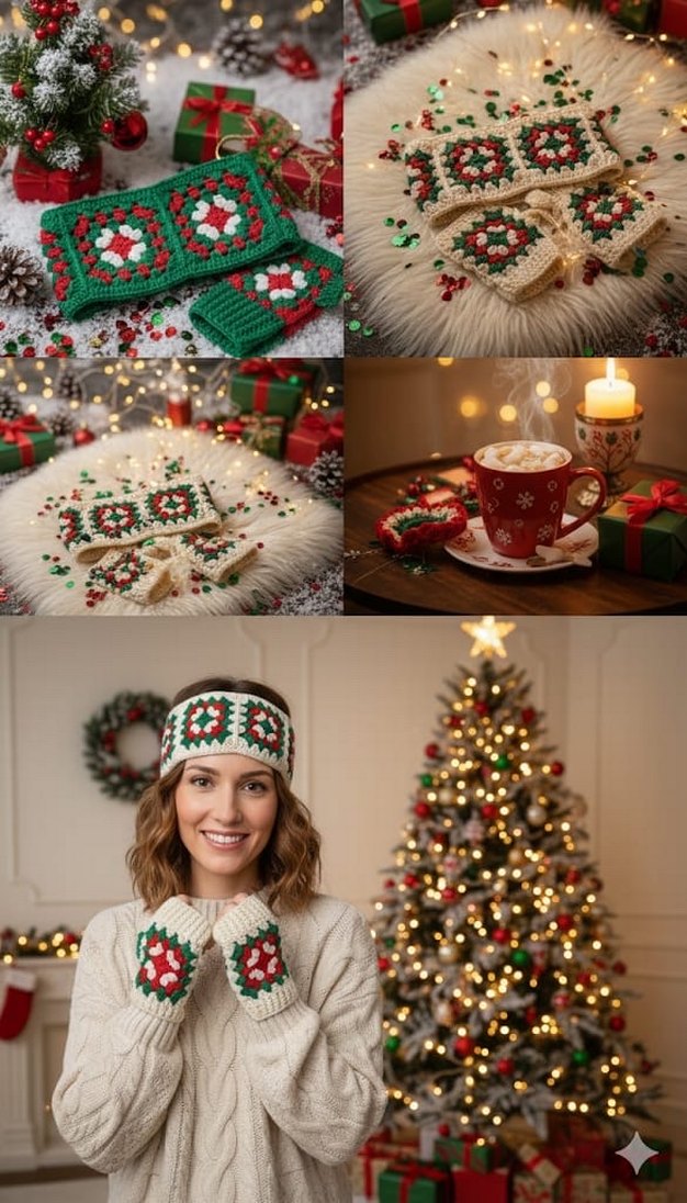 Kırmızı, yeşil ve beyaz desenlere sahip renkli örgü kadın eldiven ve saç bandı seti, rahat ve bohem bir tarz sunar. Hangi renk isterseniz yorumlarda iletin.