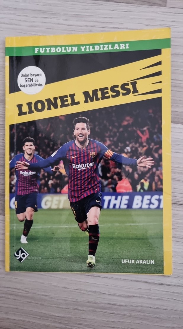 Lionel Messi'nin yer aldığı koyu renk temalı futbol kitabı, 'Futbolun Yıldızları' serisinden Ufuk Akalın'ın eseri, motive edici mesajlar içeriyor. ⚽