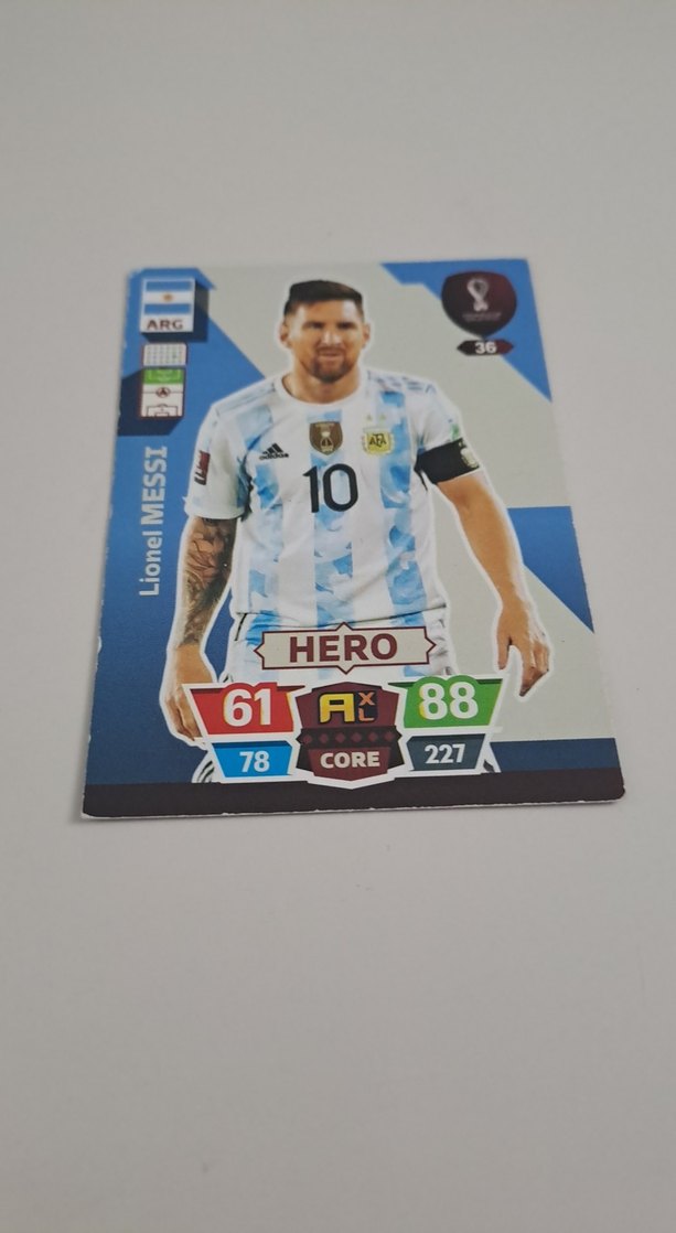 Mavi renkte, Lionel Messi'nin Arjantin formasıyla yer aldığı pop kültür rozeti. 10 numara, HERO, CORE ve ARG yazıları ile cesur athleisure tarzını yansıtıyor. ⚽