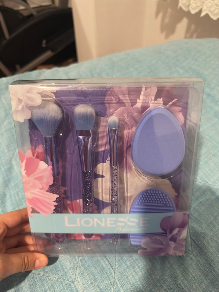 Lionesse makyaj fırça seti, üç adet açık mor fırça, bir makyaj süngeri ve silikon fırça temizleyici içerir. Hassas makyaj uygulaması için uygundur. Sıfırdır