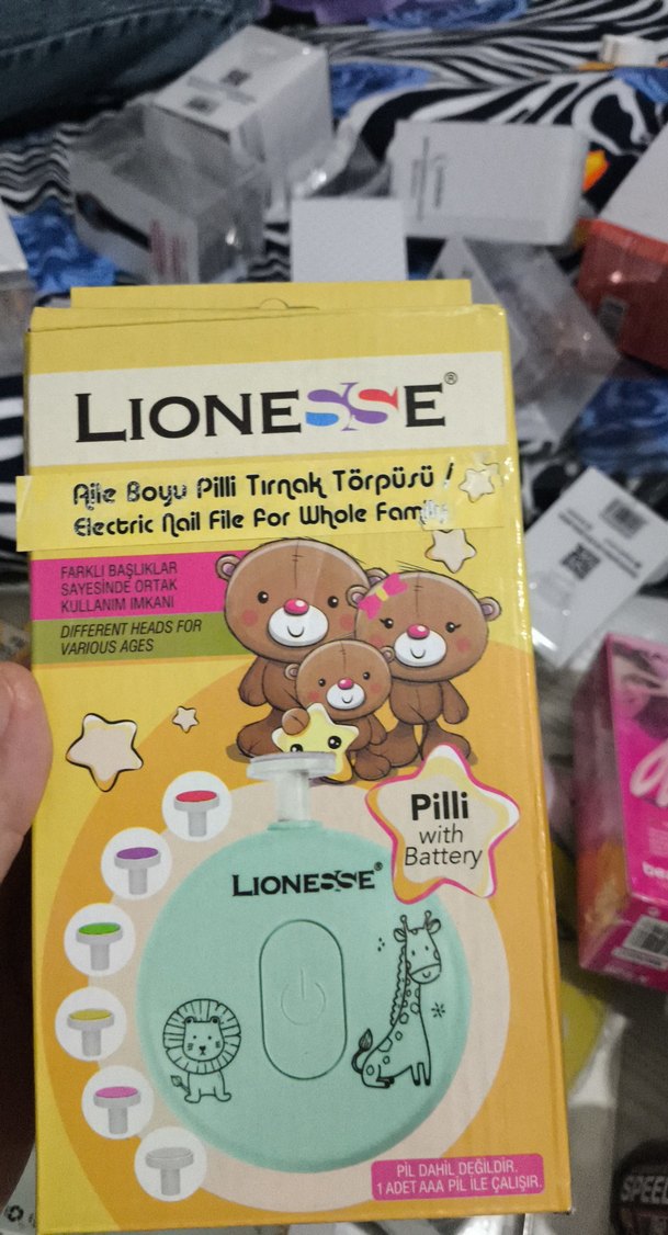 Lionesse pilli elektrikli tırnak törpüsü, farklı yaşlar için değiştirilebilir başlıklarla aile boyu kullanım sağlar. Açık camel renkte ve çoklu başlıklarla birlikte gelir.