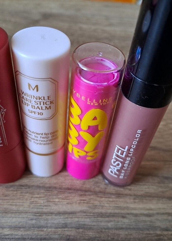 ilk ikisi missha harika ürünler yenisini aldığım için bunları elden cikariyorum.pembe maybellinne lip balm ve pastel 20 numara nude pembe ruj tamamı dolu neredeyse hepsinin