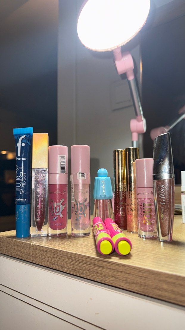 11 adet icerik cekmek icin alinmis cogu 2-3 defadan fazla kullanilmamis lip glosslar. Lovely, flormar, deborah ve beauty girl markalari