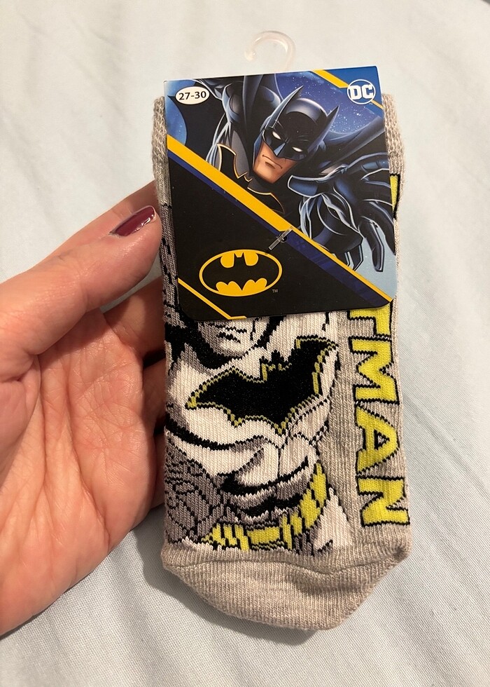 7Y, 27-30 numara Batman sembollü orijinal lisanslı erkek çorabı satılıktır. Sıfırdır ve etiketlidir.